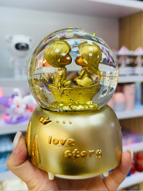 گوی موزیکال پمپی برفی طرح دختروپسرطلایی 3