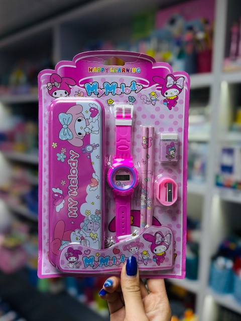 محتویات بسته : مداد/تراش/پاکن/دفترچه یادداشت/ساعت/جامدادی و......محتویات هربسته طبق عکس می باشد.