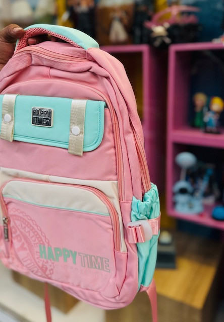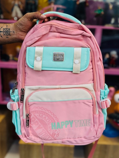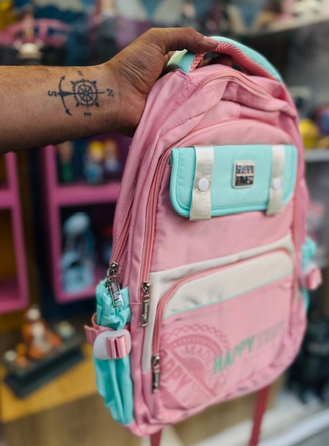 کیف و کوله پشتی مدرسه وارداتی طرح HAPPY رنگ پاستیلی 3